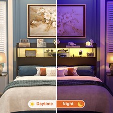 Headboard for King/Queen/Full Size Bed with Storage Shelf & Outlets & RGB Light