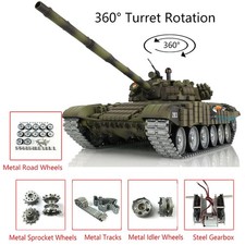 Henglong 1/16 7.0 RC RTR Battle Tank T72 3939 W/Armor Metal Tracks 360° Turret