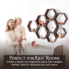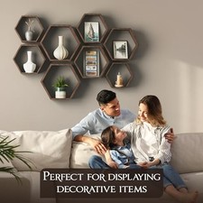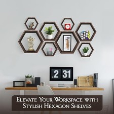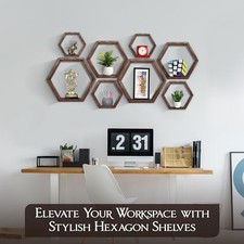 Hexagon Floating Shelves Set of 8 Honeycomb Shelves for Wall, Rustic Brown