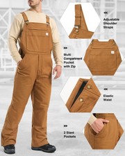 HISEA Men’s Insulated Bib Overalls Loose Fit Utility Workwear Canvas Jumpsuits