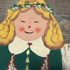 Holiday Hand Painted Wooded Welcome Sign Angel Folk Art 1999 Christmas Decor 23″