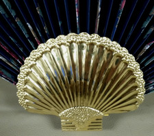 Home Interiors Brass Base 21″ x 40″ Wall Hanging Large Fan Floral Art VTG MCM
