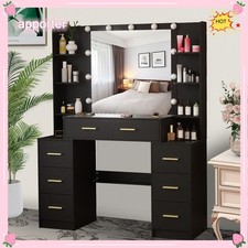 Home Vanity Desk Makeup Vanity Desk With 3 Modes Led Light Mirror For Bedroom