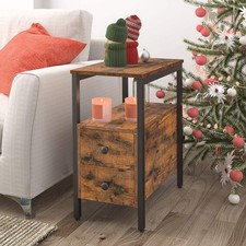 HOOBRO End Table, Narrow Chairside Table with Drawer and Open Storage Shelf, Nig