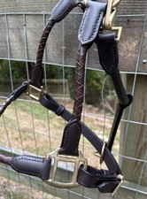 Horse Size Dark Brown Halter Top Grain Leather Brass Buckles