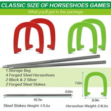 Horseshoes Outside Game w/4 Steel Horseshoes, 2 Stakes & Carrying Bag Kid Adult