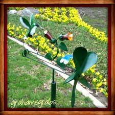 HUMMINGBIRD & DRAGONFLY WHIRLIGIG WIND POWERED KINETIC YARD DECO SPINNER NEW