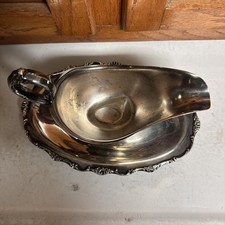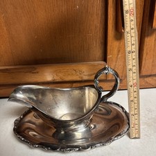 International Silver Co Silver Plated Vintage Gravy Boat With Tray & Floral Rim