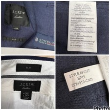 J. Crew Suit Mens 42R Slim Fit Cotton Linen Taper Pants 33×29 Navy Unstructured