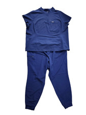 Jaanuu men’s full scrub set navy blue size 2X button drawstring stretch pockets