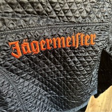 Jägermeister Black Quilted Jacket with Orange Logo, heavily worn, y2k promo rare