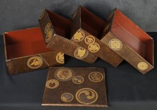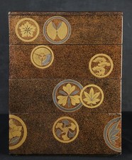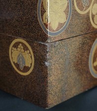 Japan lacquer Mon Samurai Bento Jyubako food box 1900 Wajima craft