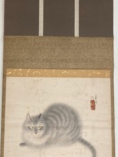 Japan Vintage Hanging Scroll Kakejiku Nihonga Painting Cat Sakura