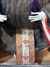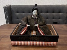 Japanese Hina Doll Emperor in Black Floral Display Case Kimono Hina Matsuri