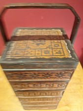 Japanese Jubako Bamboo Basket Chinese Asian Picnic Wedding 5 Tiered Vintage gyuh