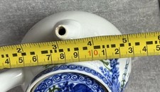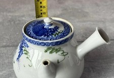 Japanese Meiji Period Kyusu Tea Pot Blue White Floral Pattern Vintage/ Antique