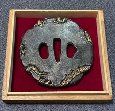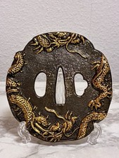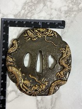 Japanese Sword Tsuba Dragon Design Gold Inlay Non-Magnetic Samurai Guard