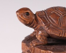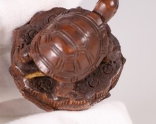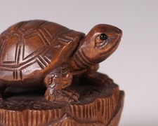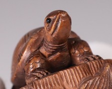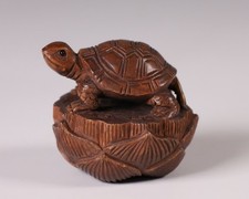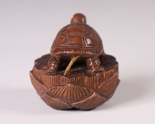 Japanese Wood Carving Lotus & Turtle Netsuke Inro Ojime By Ishikawa Meiji Era