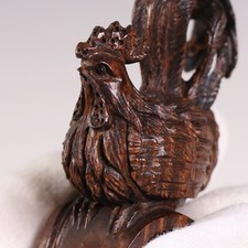Japanese Wooden Rooster Netsuke 1.5inch Inro Ojime Hand Carved Bird Figurine