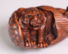Be the first to review “Japanese Wooden Tiger Netsuke 1.97inch Ojime Figurine Hanging Objects By Ikko”