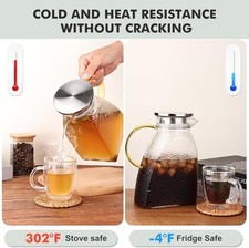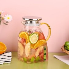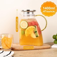 Jarra De Vidrio Para Servir Bebidas Frías Calientes 47oz Con Tapa De Acero
