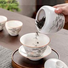 Jingdezhen Ceramic Gaiwan Teacup Handmade Tea Tureen Boutique Tea Bowl Chinese