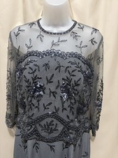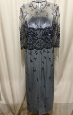 Jovani Beaded Evening Gown Gray Chiffon Sheer Overlay Formal Dress Sz 10