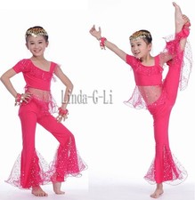 Kids Girls Belly Dance Top+Pants Set Outfit sequins Bollywood Dance Costume