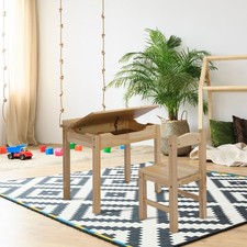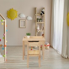 Kids Table and Chair Set Wood Activity Study Desk w/Storage Space,Natural Color