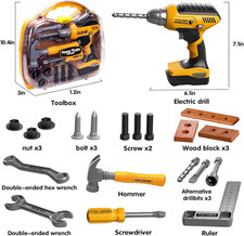 Kids Tool Set with Tool Box & Electronic Toy Drill, Pretend Play Kids Constructi