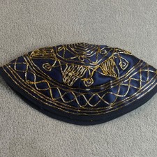 Be the first to review “Kippah Yarmulke Jewish Hat Cap Navy Blue Gold Embroidered Vintage Religious Mens”