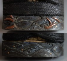 koshirae wakizashi red saya Ume kozuka octopus fuchi samurai sword fitting