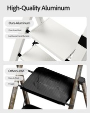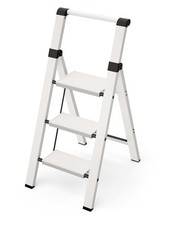 Ladder, Lightweight Aluminum Step Stool with Convenient Handgrip, 3 Step White