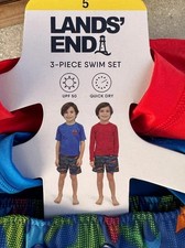 Be the first to review “Lands’ End 3 Piece Swim Set Rash-Guard Trunks Boy’s Size 5 Red Shark Print”