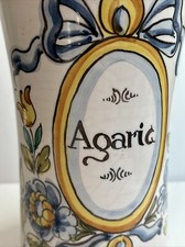 Large 19th cen APOTHECARY JAR 11.5″ Agaric Faience ceramic Maiolica hand painted