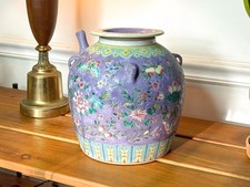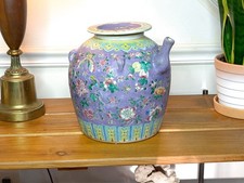 Large Antique Chinese Famille Rose Enamelware Ornate Lidded Water Teapot Vessel