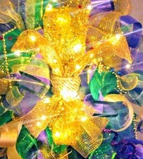 Large Handmade Mardi Gras Front Door Wreath Pre-Lit Fleur De Lis Deco Mesh Decor