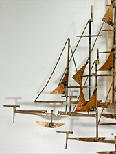 LARGE VINTAGE BRUTALIST SHIP SCHOONER METAL WALL JERE STYLE Sculpture MCM SIGNED