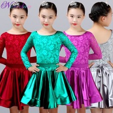 Latin Dance Dress Girls Ballroom Skirt Dress Girls Satin Bright Satin Fabric