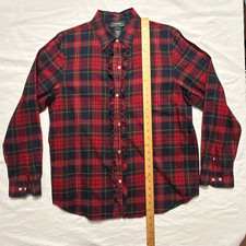 Lauren Ralph Lauren Plaid Button Front Blouse | Ruffle Front | Red Green Tartan