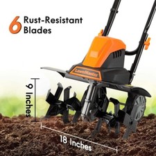 LawnMaster 18” Corded Electric Tiller 13.5 AMP 6-Steel Blades Foldable Design