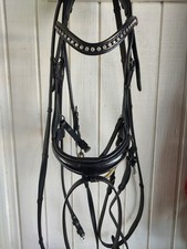 Leather Dressage Bridle Black Full Size Horse with Crystal Browband
