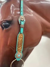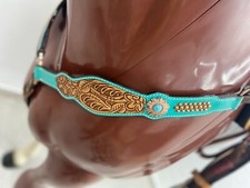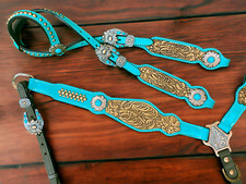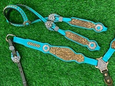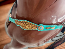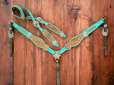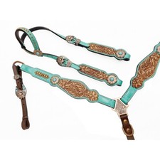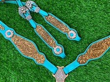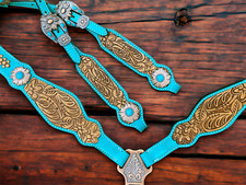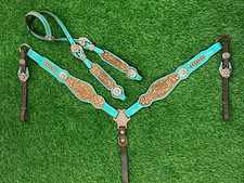 Leather Headstall and Breast Collar Set Turquoise Blue and Brown Headstall MOUSM