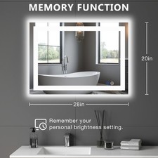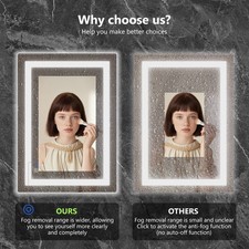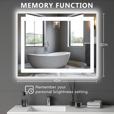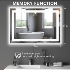 LED Dimmable Lighted Bathroom Mirror Anti-Fog Wall Mounted Rectangle Mirror