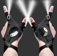 LED Flashlight Gloves Rechargeable Waterproof Finger Lights Hands Free Tool Gear