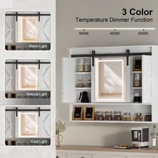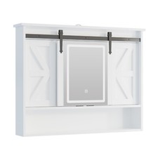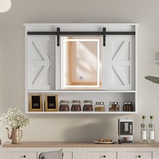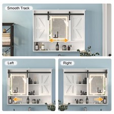 LED Medicine Cabinet Mirror Bathroom Wall Cabinet w/Lights and Sliding Barn Door
