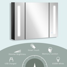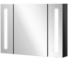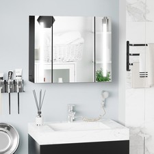LED Medicine Cabinet Wall-Mounted Bathroom 3 Mirrored Door High Gloss Black
