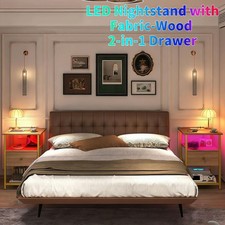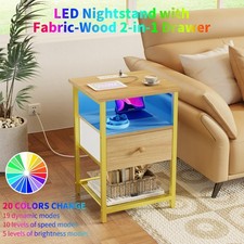 LED Nightstands Set of 2 With Charging Station Side Tables With USB and Outlets