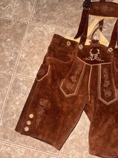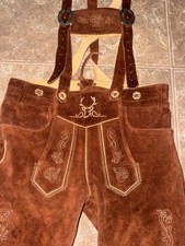 Lederhosen Men Bavarian Leather with Suspenders – Oktoberfest US Size 30 EUC