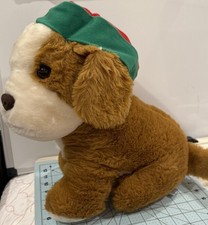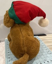 LEMONWOOD ASIA BROWN WHITE PUPPY DOG IN ELF HAT CHRISTMAS STUFFED ANIMAL